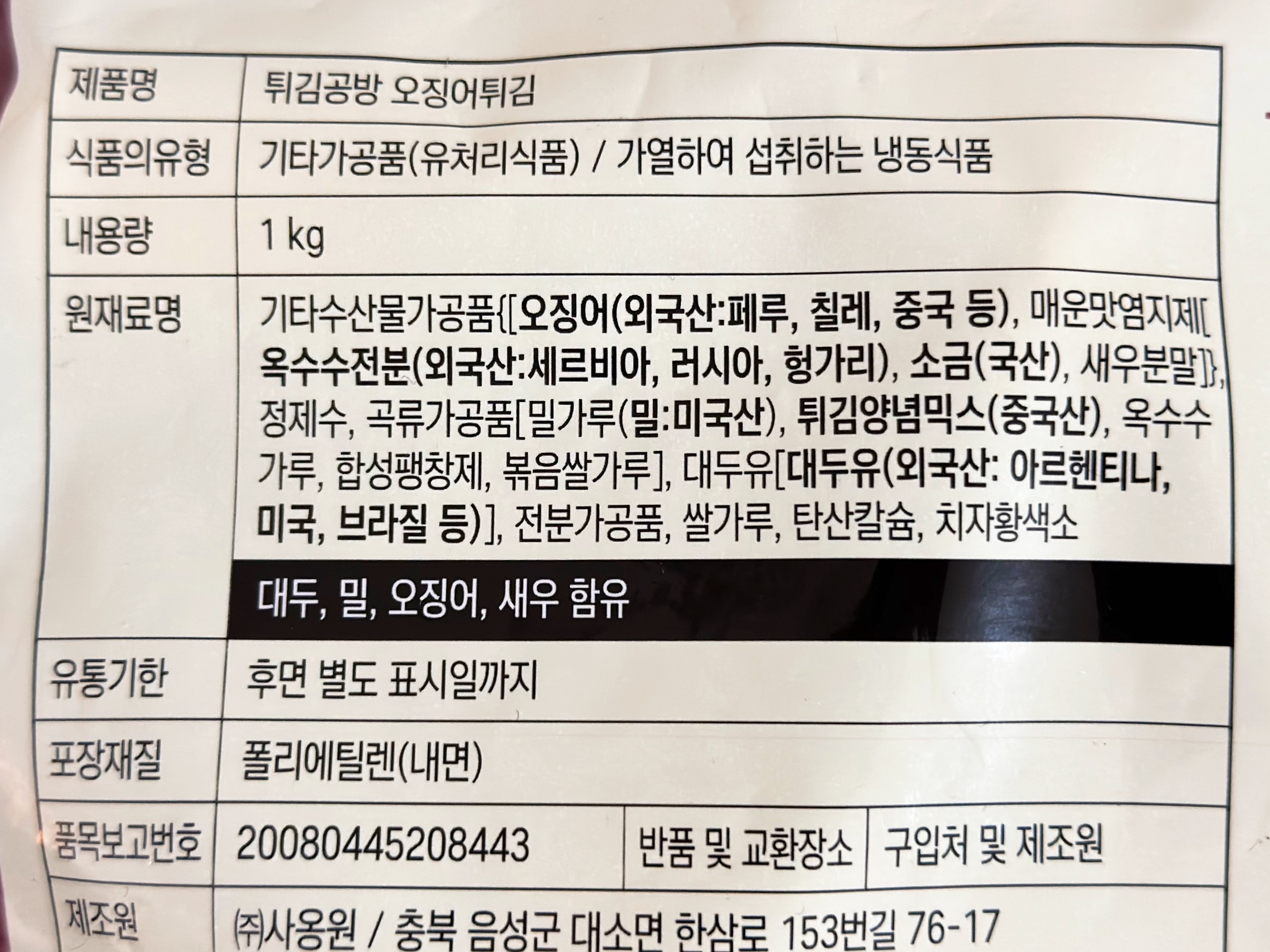 제품 봉투에 써져 있듯이 정말 '쫄깃하고 통통'한 오징어가 실하게 들어있습니다.