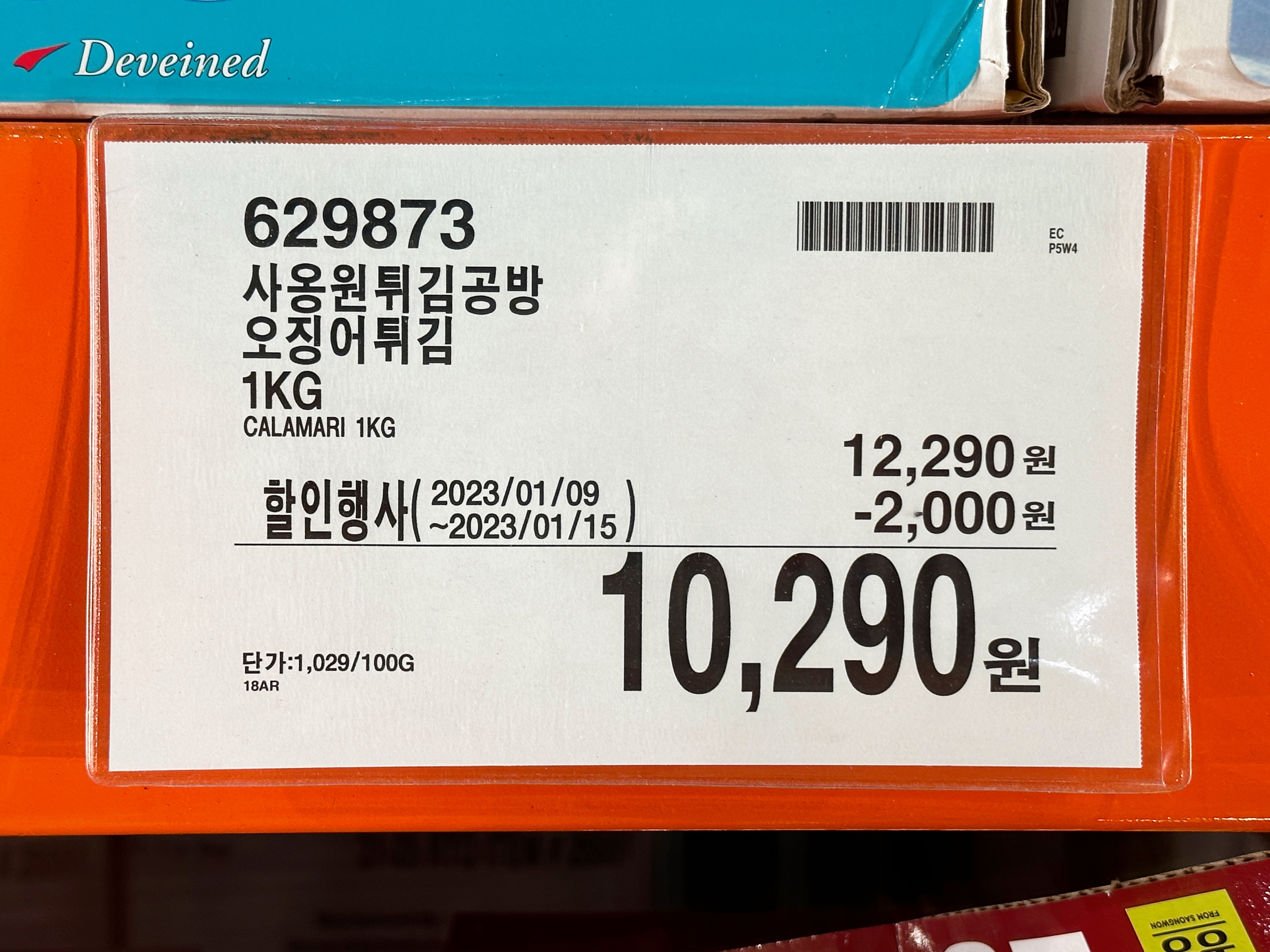 코스트코 사옹원 튀김공방 오징어튀김은 냉동코너에 위치해 있습니다.
